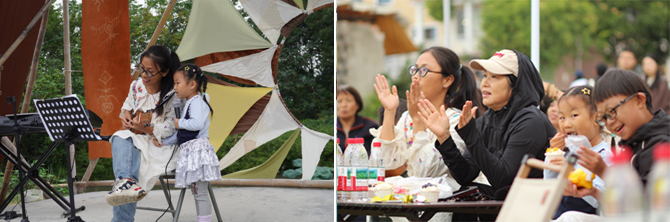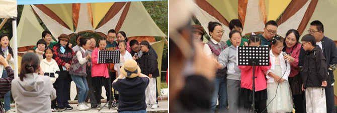 This year’s event took place on Liangzhu Nuancun’s (Warm Village) lawn, next to a pond with farmlands beyond. Farmhouse-style food stalls nearby added a strong rural vibe. Crisp air and a cool breeze made perfect outdoor singing weather.